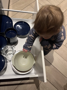 We letten natuurlijk heel goed op en zorgen dat het altijd veilig is. Ik zet bijvoorbeeld geen pan kokend water op het fornuis als zij er bij staat maar ze mag wel een klontje boter in de koekenpan gooien en een stukje vlees omdraaien.